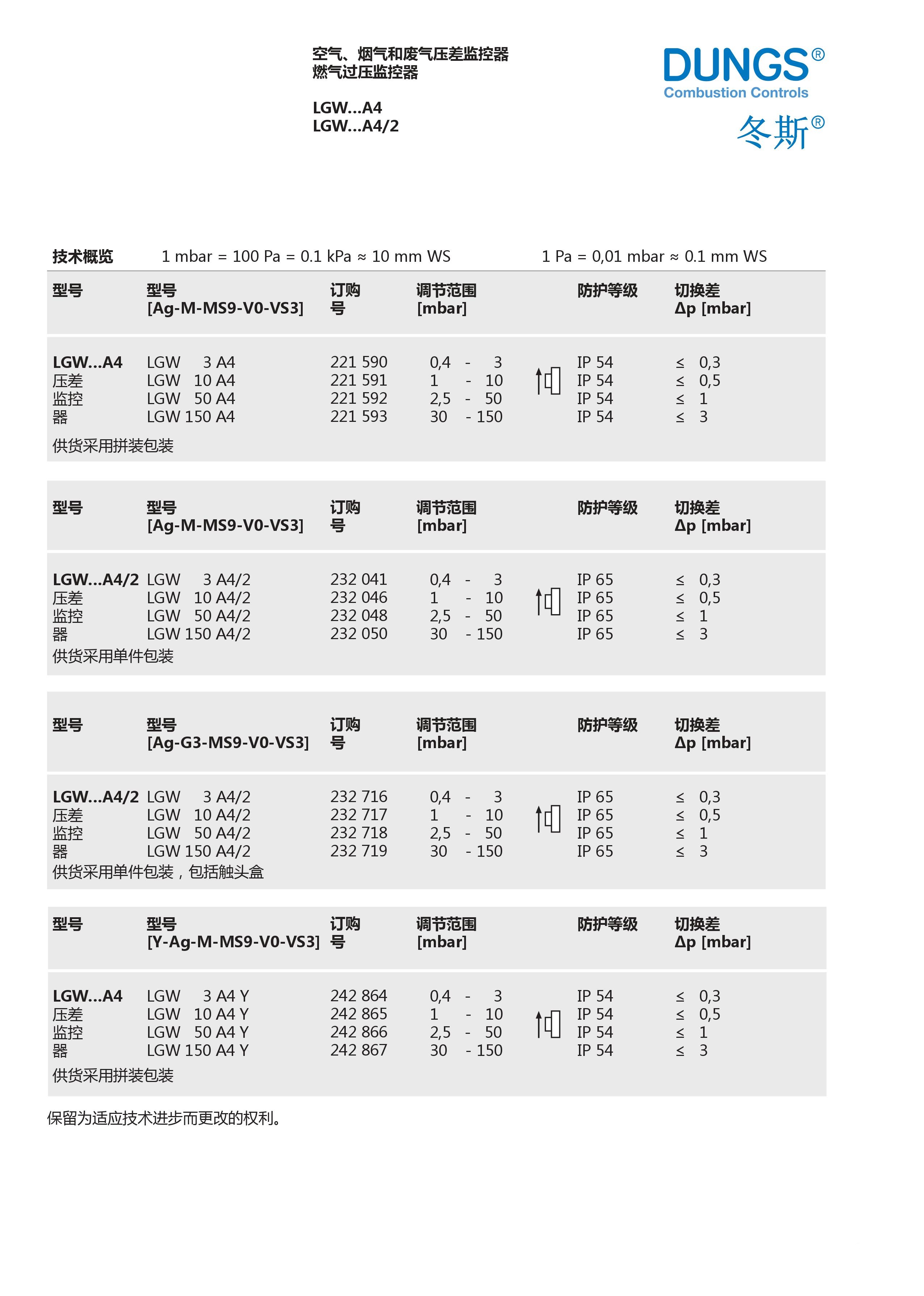 LGW..A4系列壓力開關(guān) 德國DUNGS冬斯